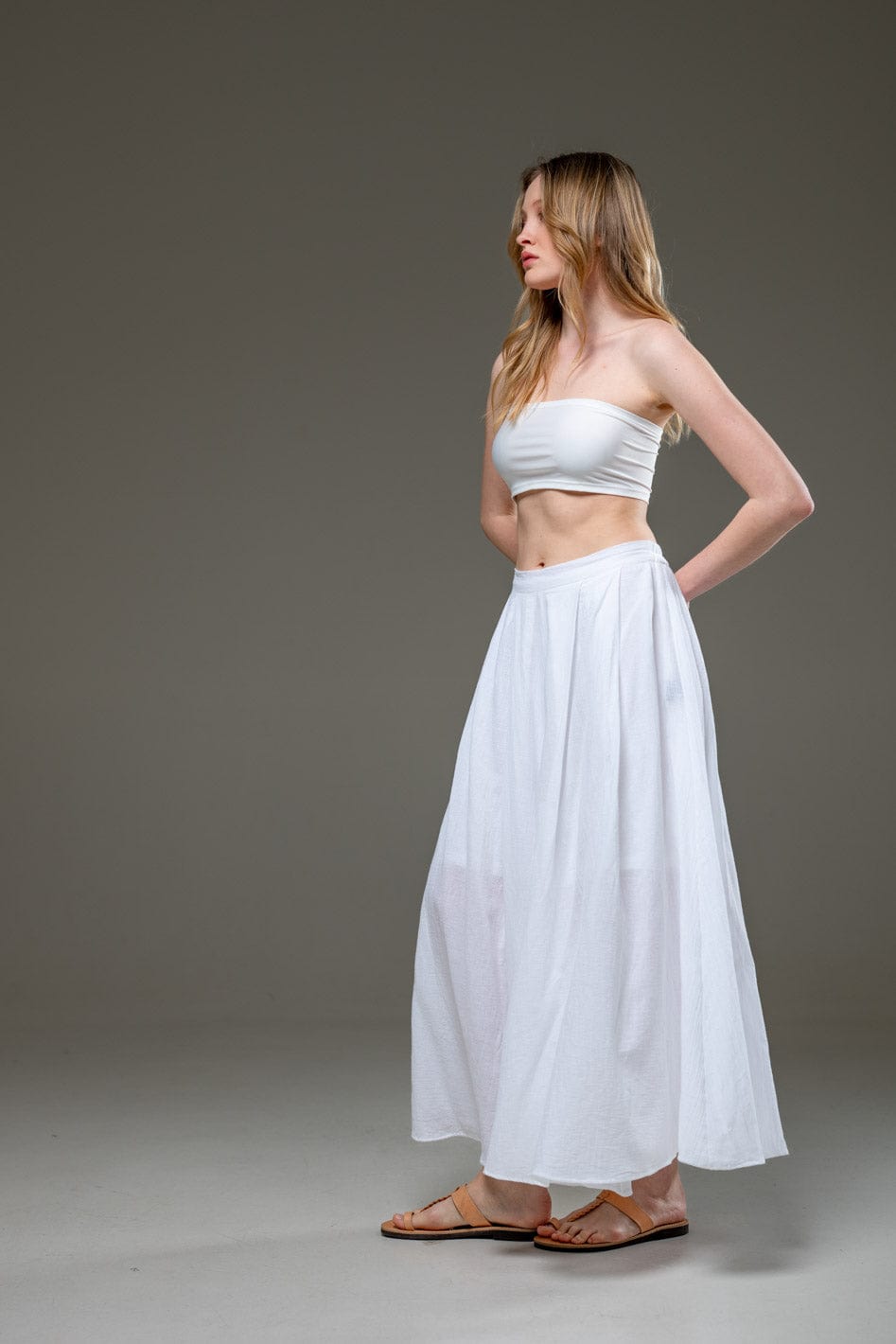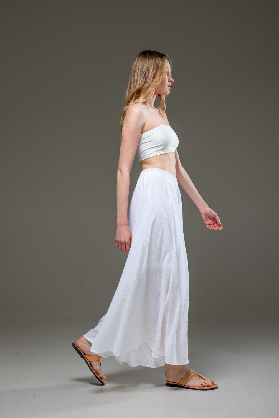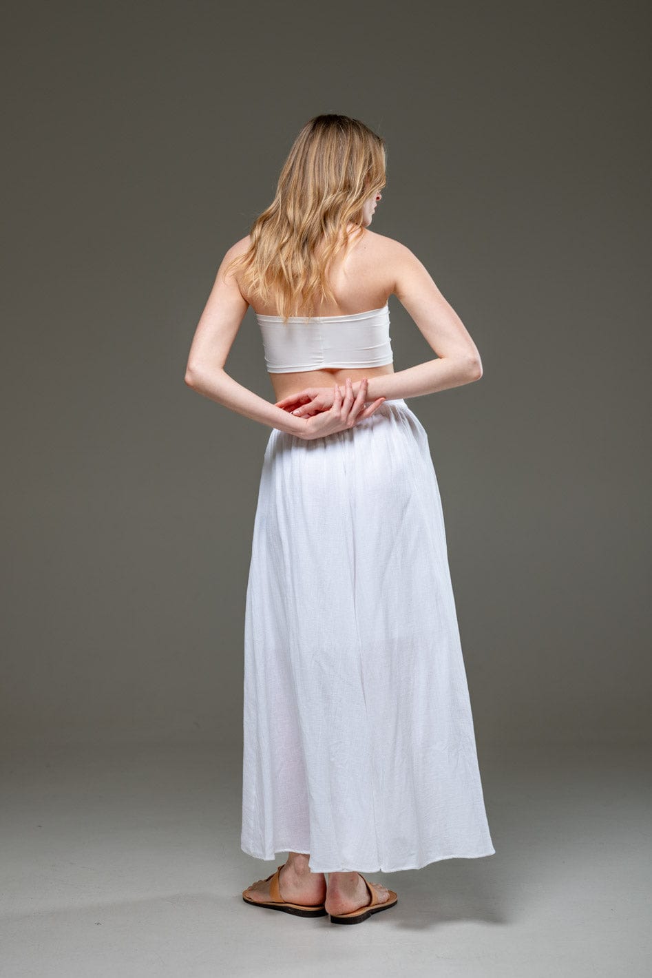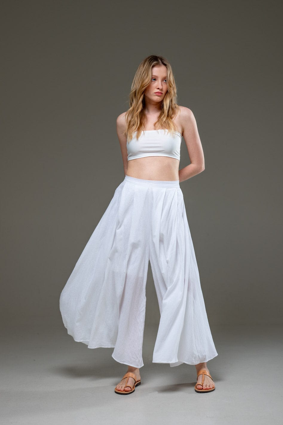 white Organic Cotton Full Length Elastic Waistline Wide Pants