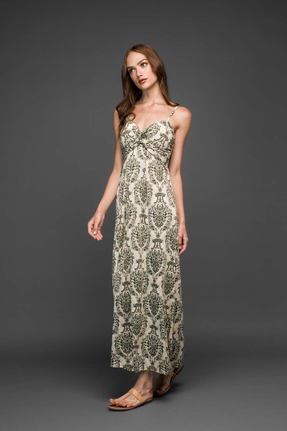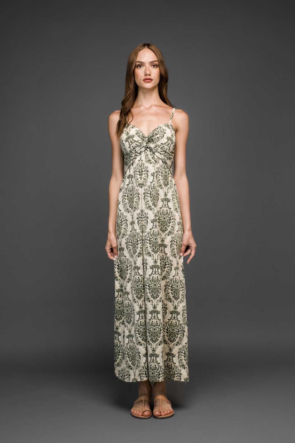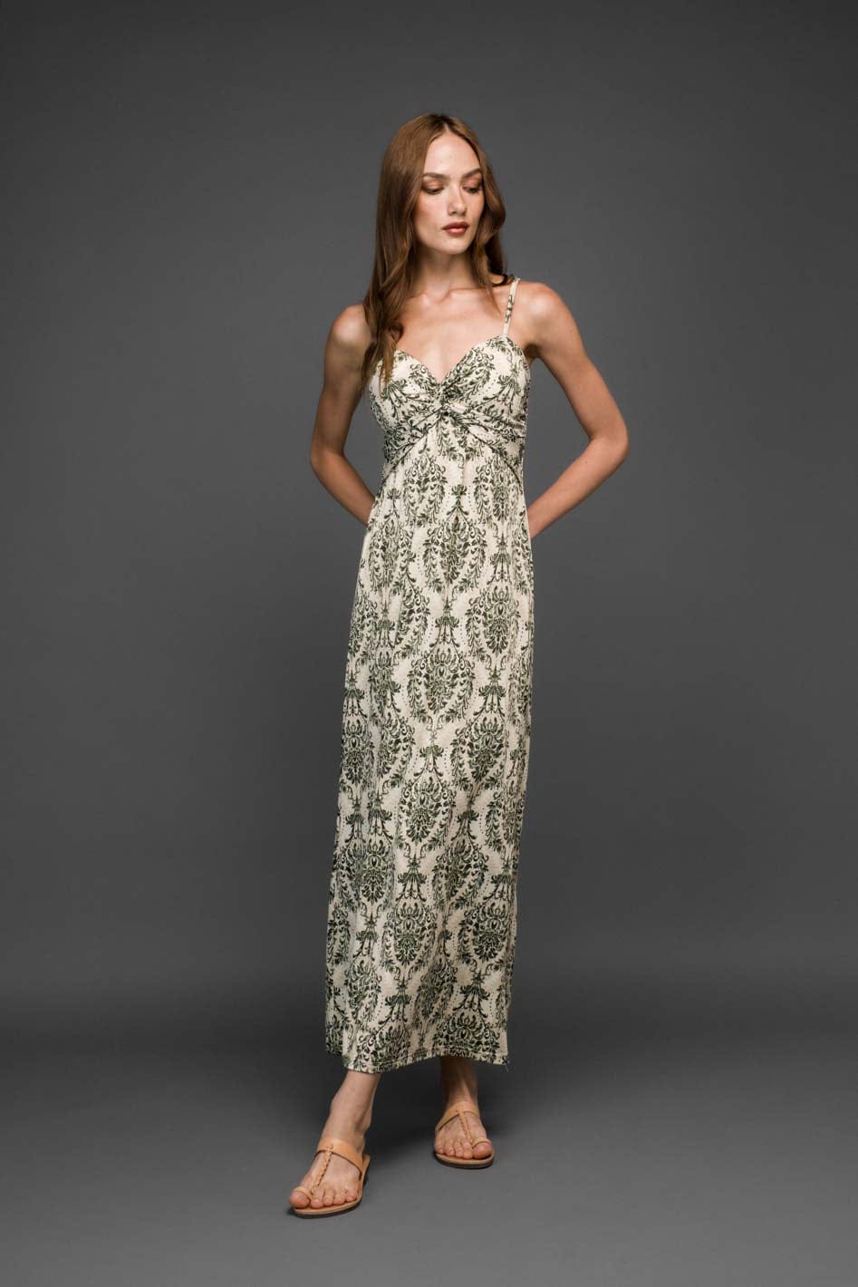 This green retro print maxi dress features delicate spaghetti straps, a flattering V neckline and an elasticated back panel for all-day comfort. The flowing silhouette combined with the vintage-inspired pattern makes it a standout summer piece for holidays, island strolls and sunset dinners