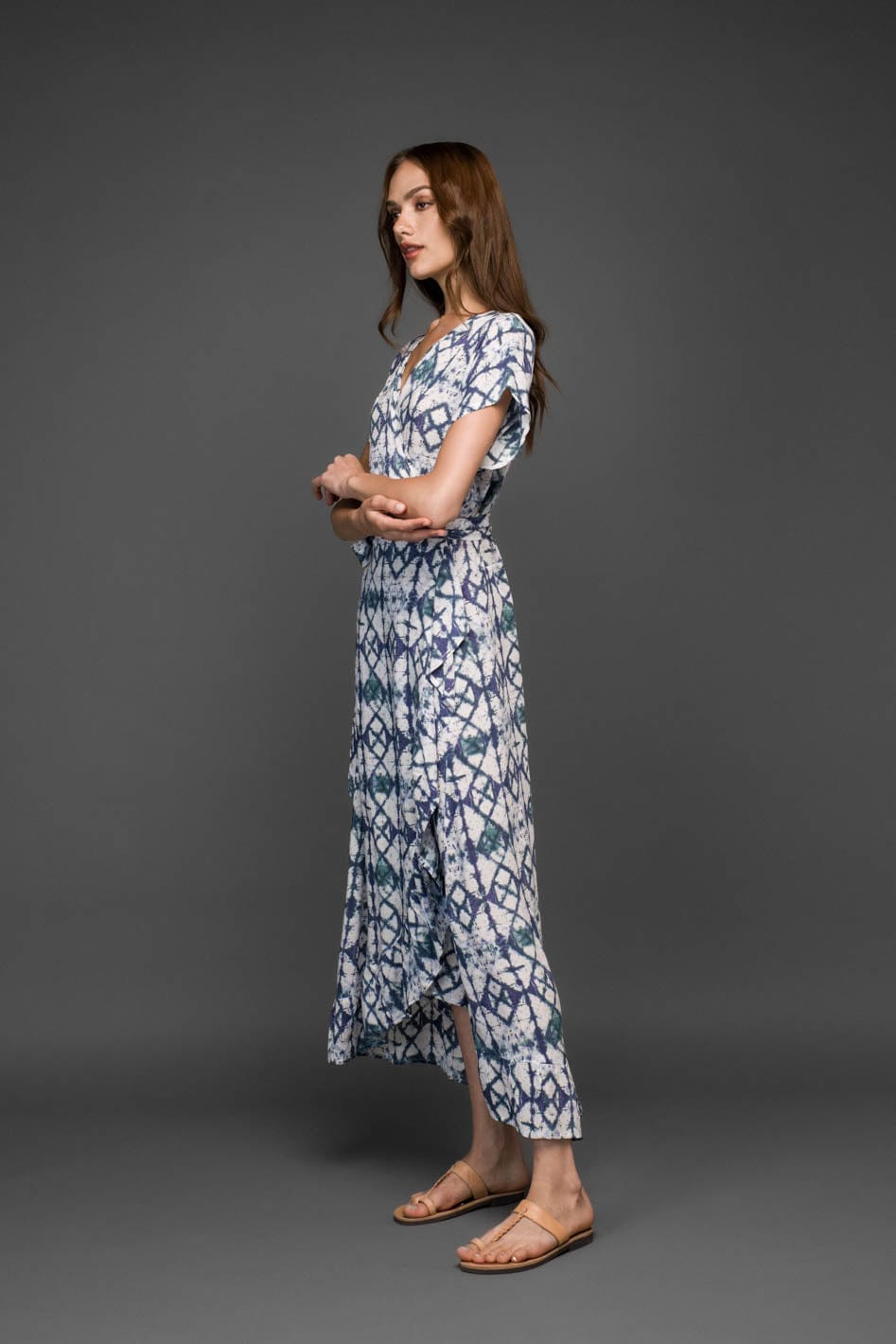 Η κολακευτική wrap γραμμή και το ελαφρώς πιο κοντό μπροστινό τελείωμα δημιουργούν όμορφη κίνηση στο ύφασμα ενώ αναδεικνύουν τη σιλουέτα.